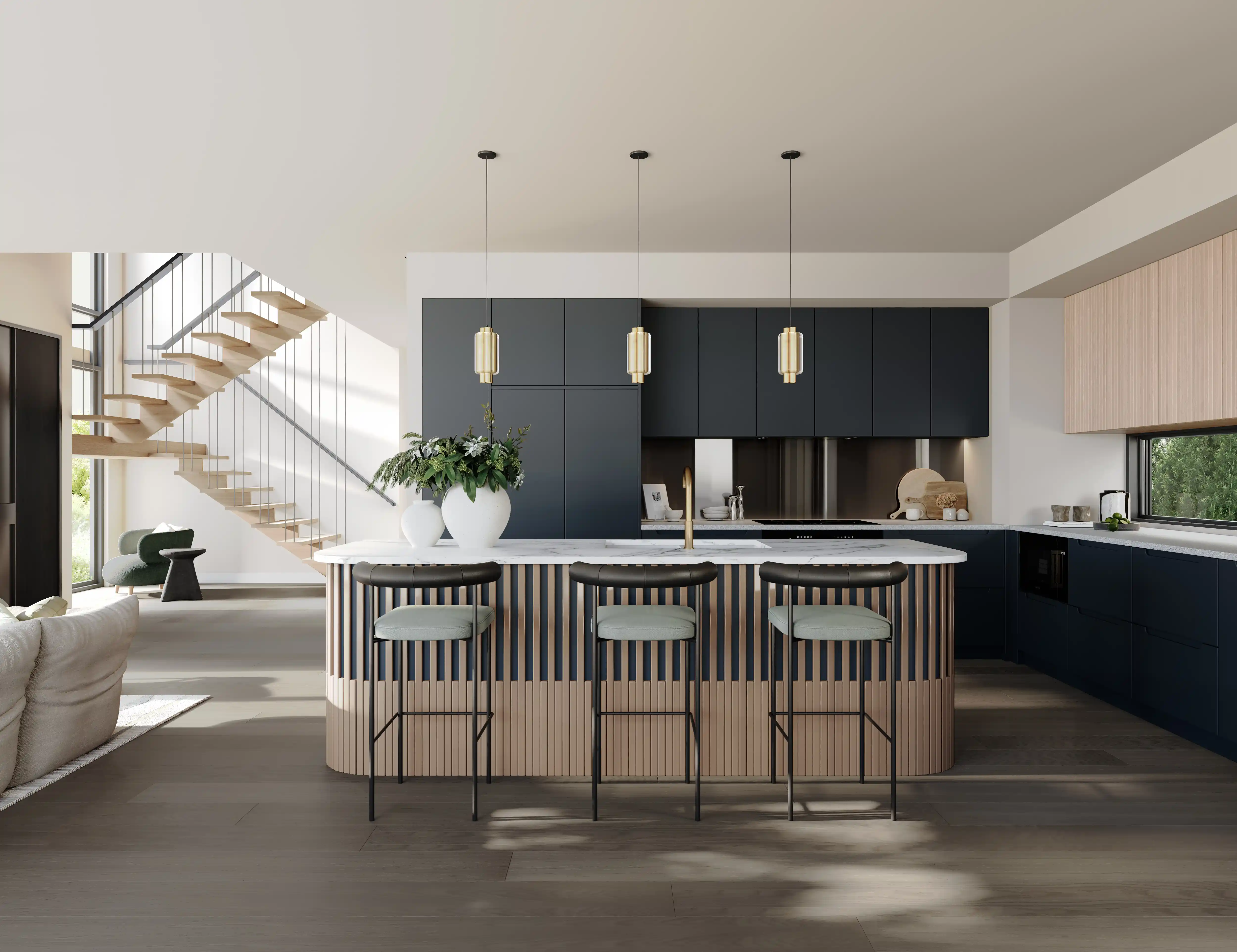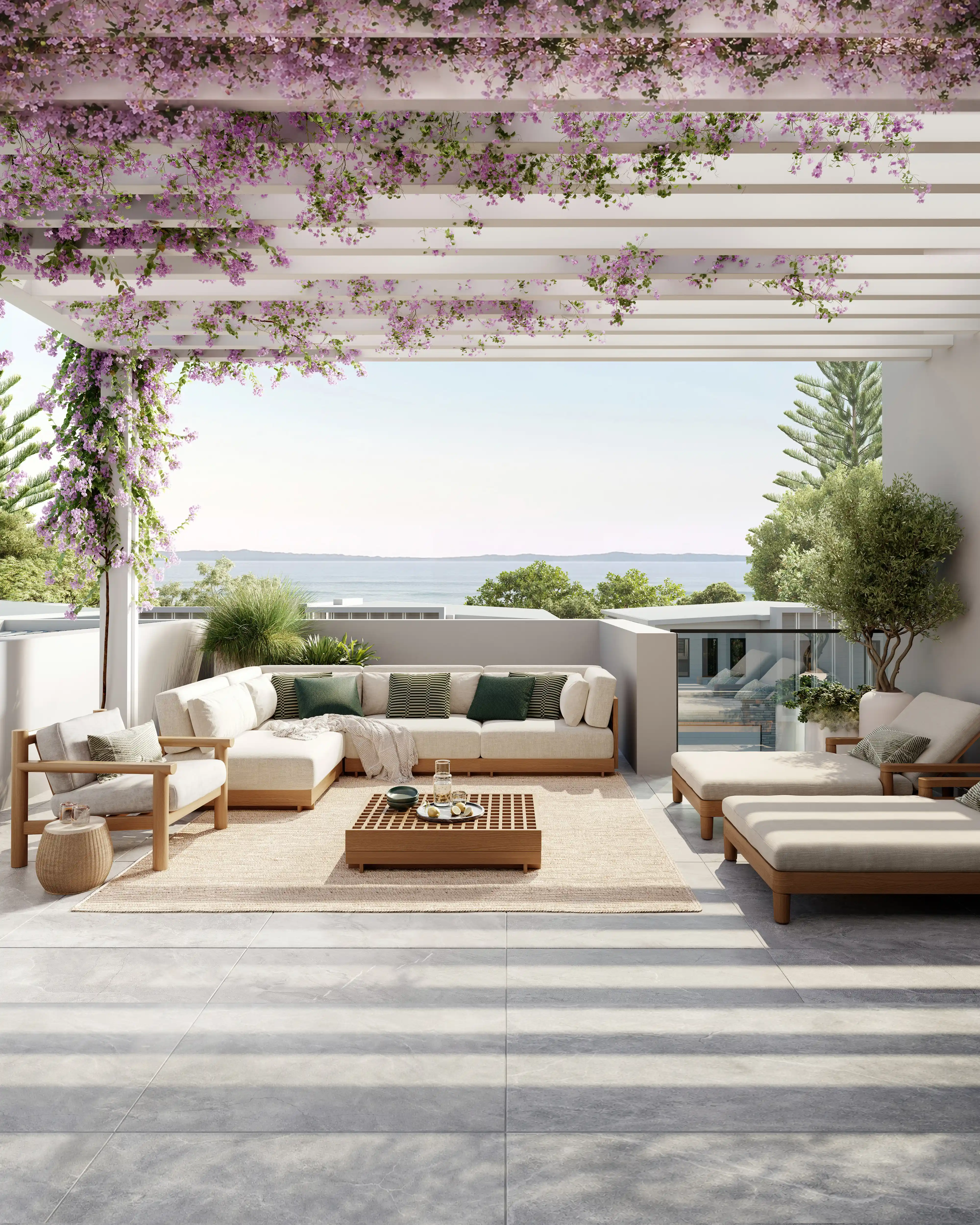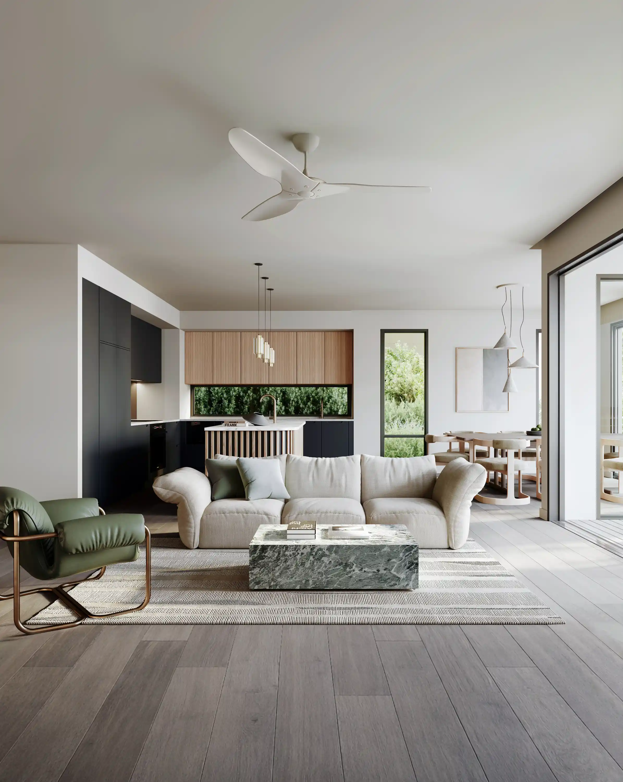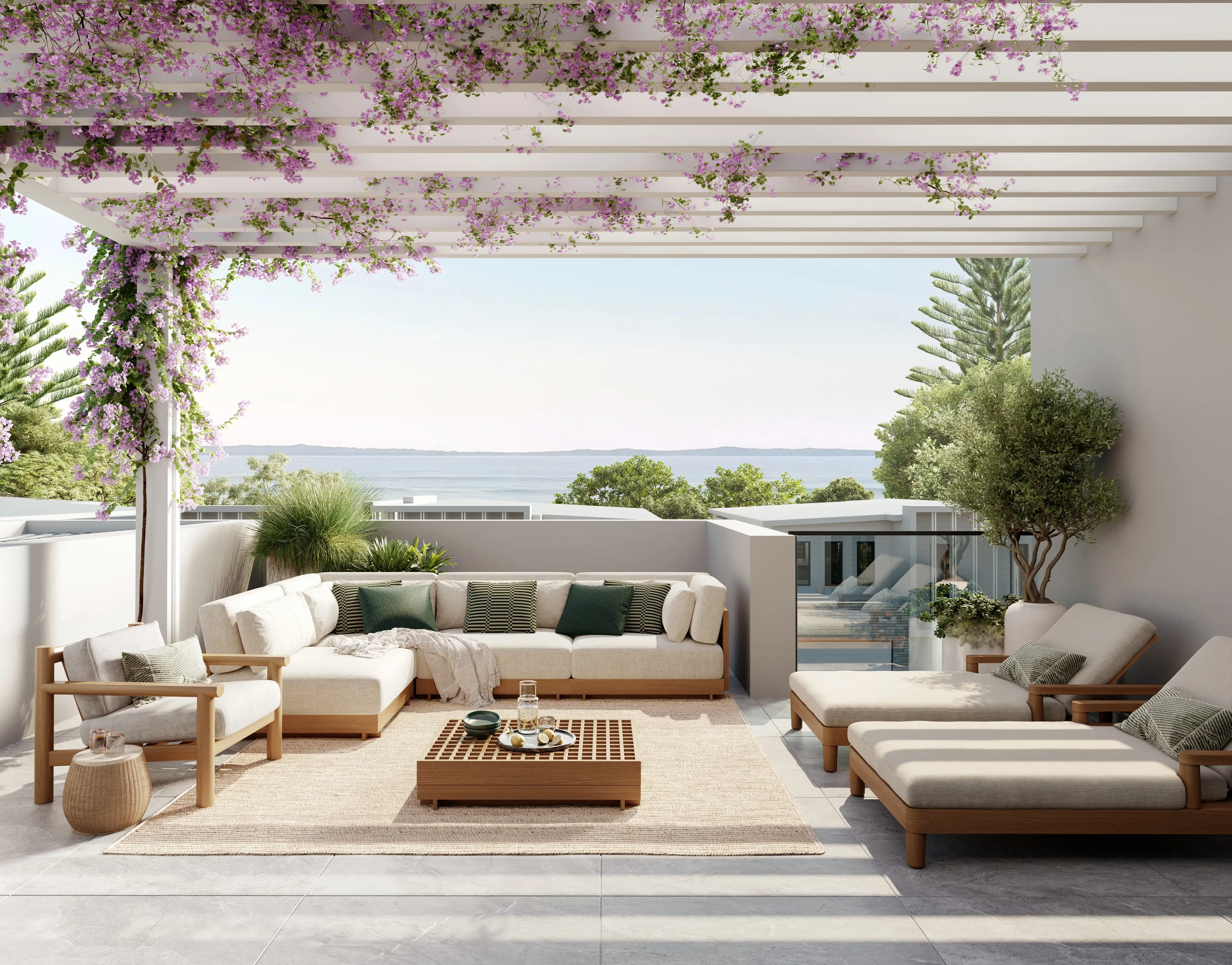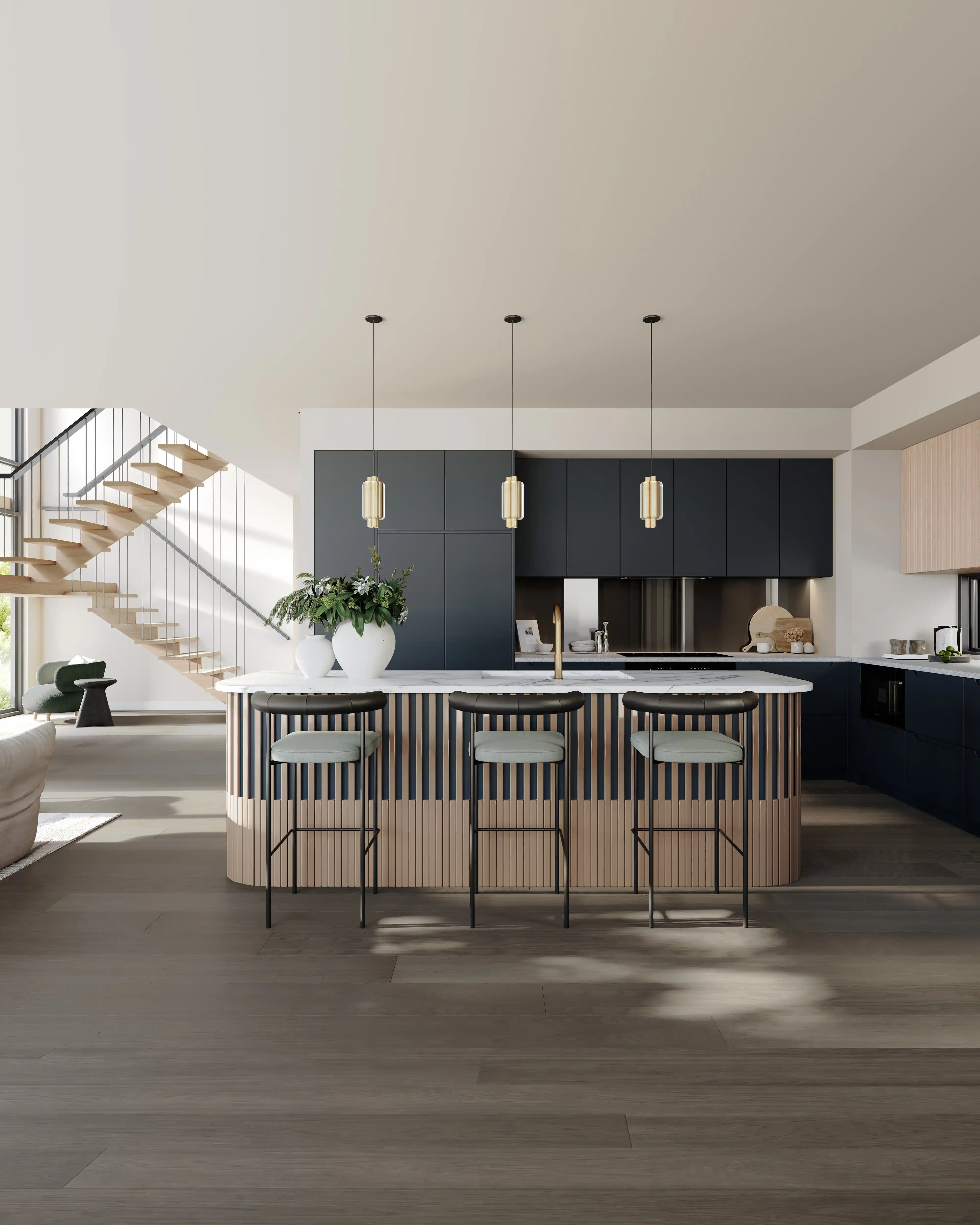 Guided by a philosophy of natural balance, South Harbour’s architecture is sculptural and enduring. Each form captures the gentle rhythm of the bay, defined by organic textures, warm, earthy palette. Timber, glass and stone are composed with restraint, allowing the architecture to settle